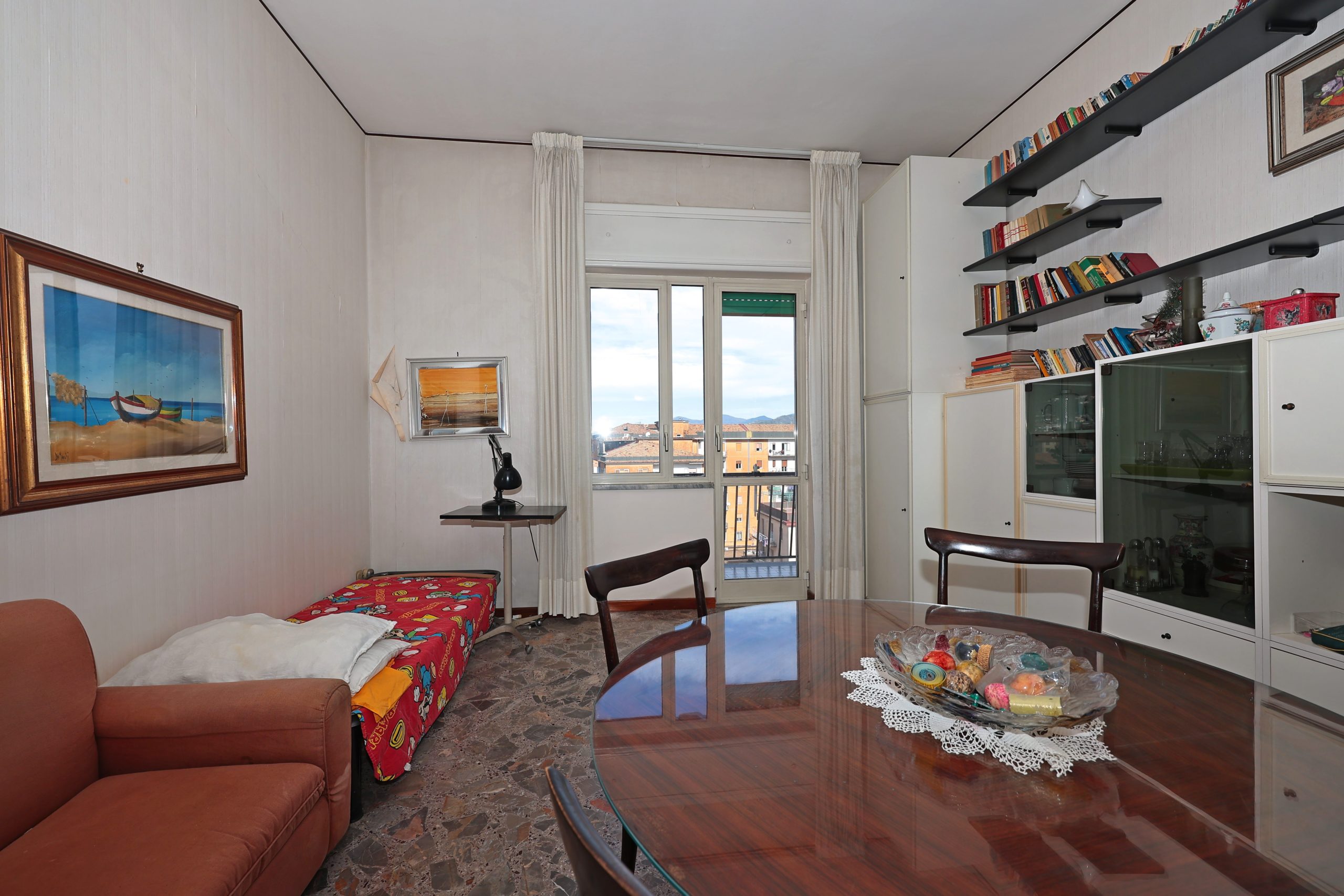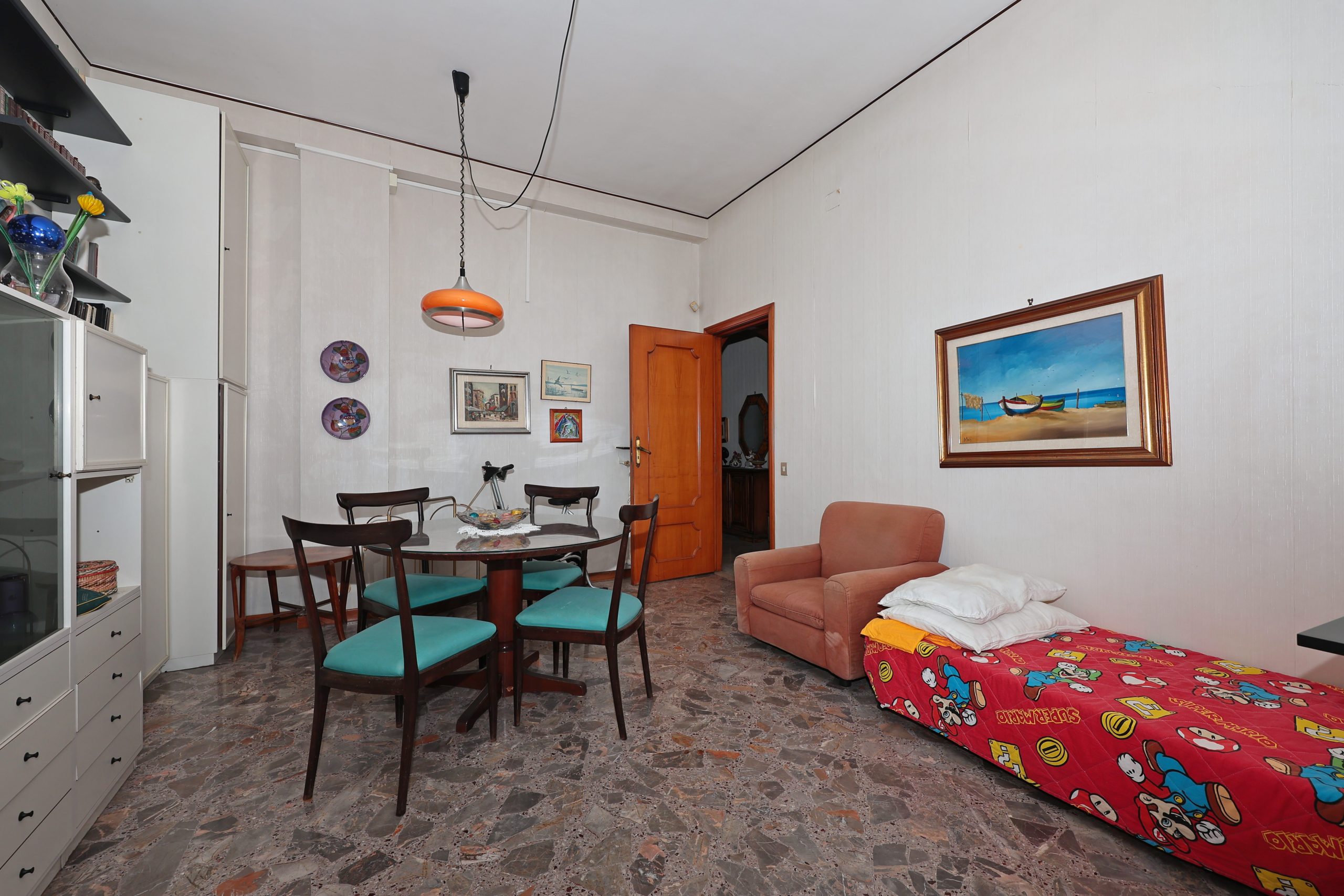 Le condizioni sono buone ed una buona redistribuzione degli spazi permetterebbe di ricavare un secondo bagno e di sfruttare al meglio l’ampio disimpegno.