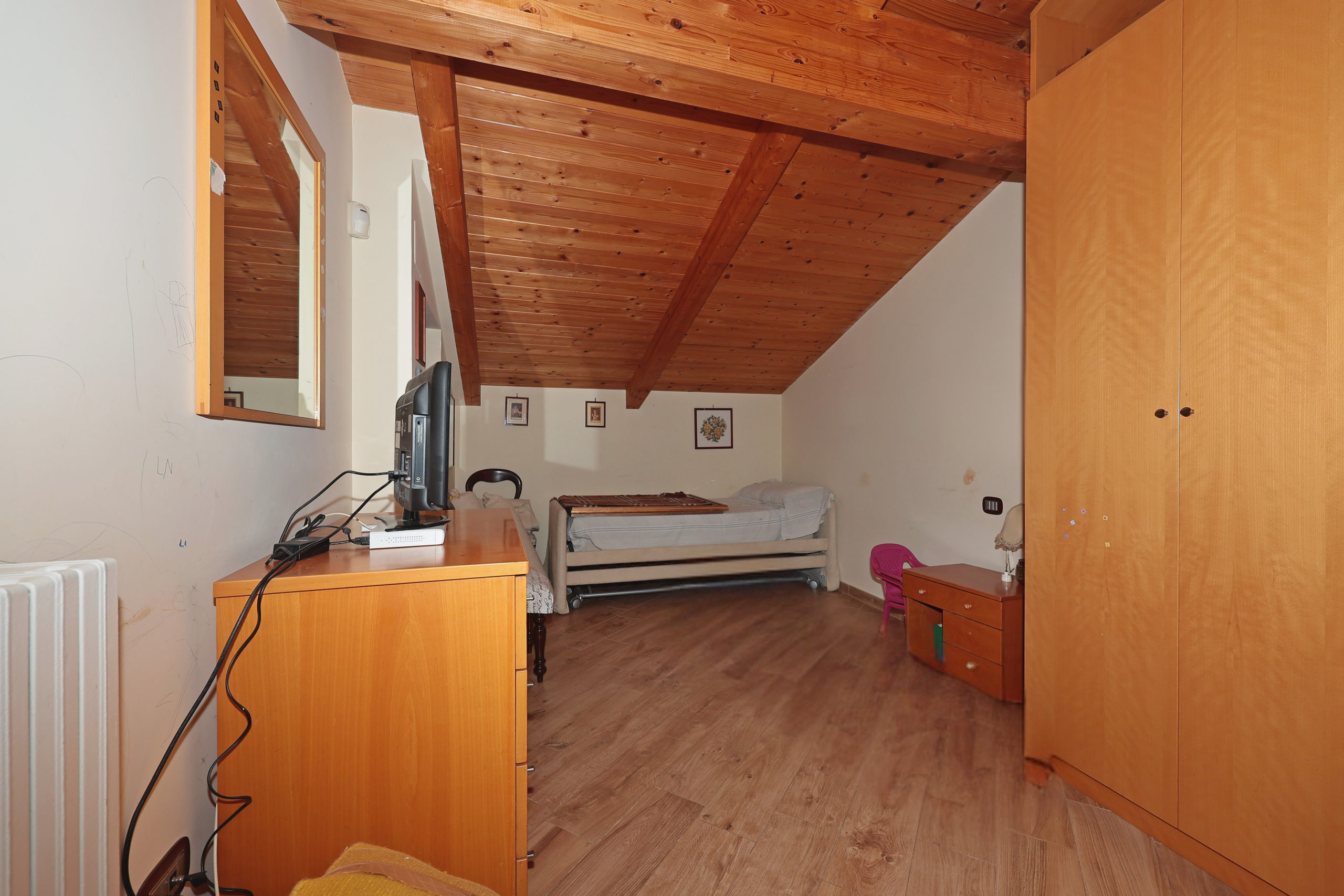 Al terzo livello troviamo la zona sottotetto: in una abitazione risulta grezzo, in un’altra risulta ristrutturato con 2 camera da letto balconate ed un bagno.